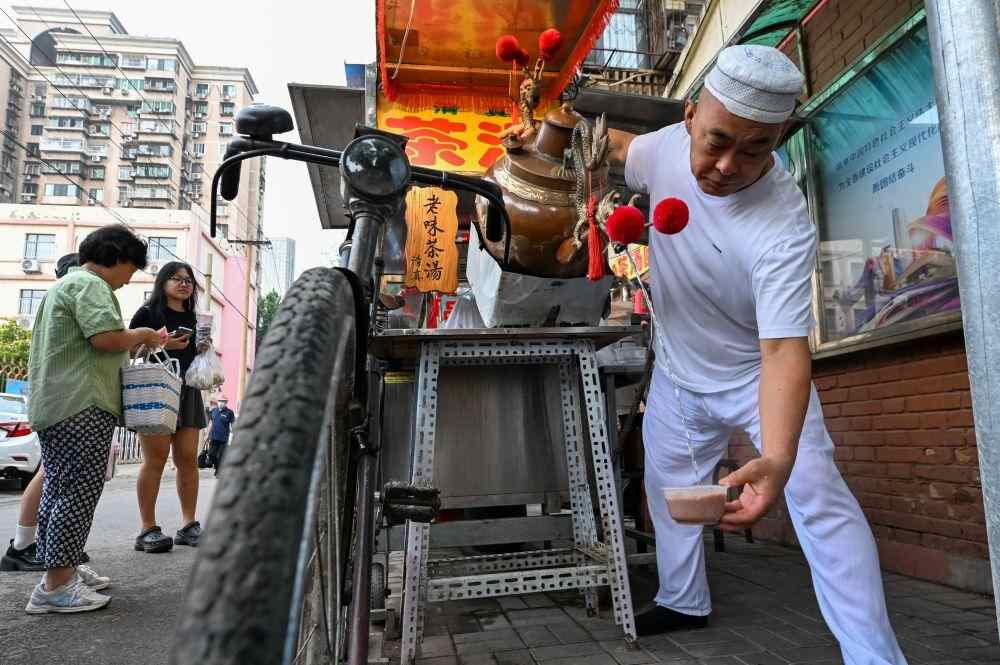 西北角商家在制作老味茶汤。新华社记者 孙凡越 摄