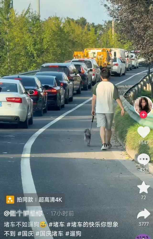 9月30日下午4点半左右,一名IP显示为上海的网友发布视频称:堵车不如遛狗,堵车的快乐你想象不到。该视频受到众多网友点赞,评论区讨论热烈。