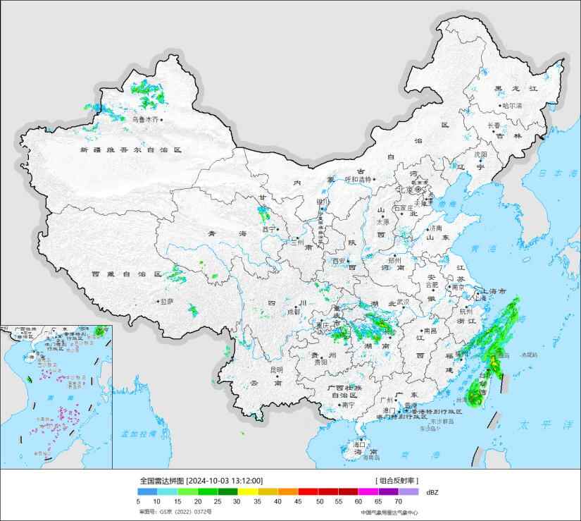 降水预报:10月3日14时至4日14时,台湾岛大部有暴雨,其中,台湾岛东部和南部部分地区有大暴雨,局地有特大暴雨(250至400毫米)。