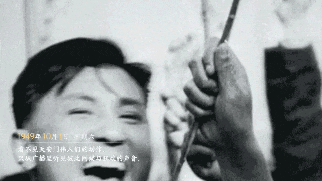 看不见天安门伟人们的动作,只从广播里听见彼此问候与狂欢的声音。