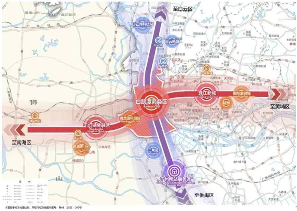 《白鹅潭地区发展规划(2020-2035年)》显示,未来由花地湾、聚龙组团、白鹅潭商务区核心区组成的黄金三极,将成为广州珠江西岸CAZ(Central Activity Zone)中央活力区的中坚力量。