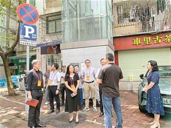 ■广州市政协调研组在荔湾区永庆坊现场调研停车场智能化建设情况。