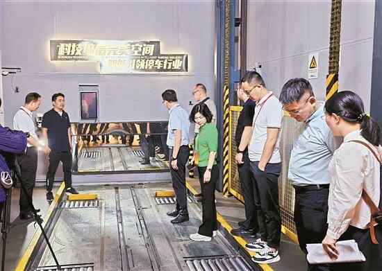 广州市政协调研组在荔湾区沙面现场调研机械式立体停车场建设情况。