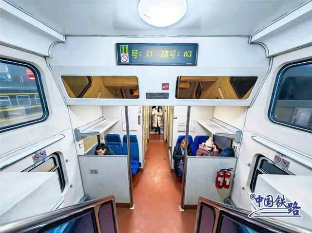 其实,这列双层火车是目前全国少数保留出厂原始涂装的25K型双层普速客车,目前只是偶尔在春运或节假日等客流高峰时段“限时回归”。