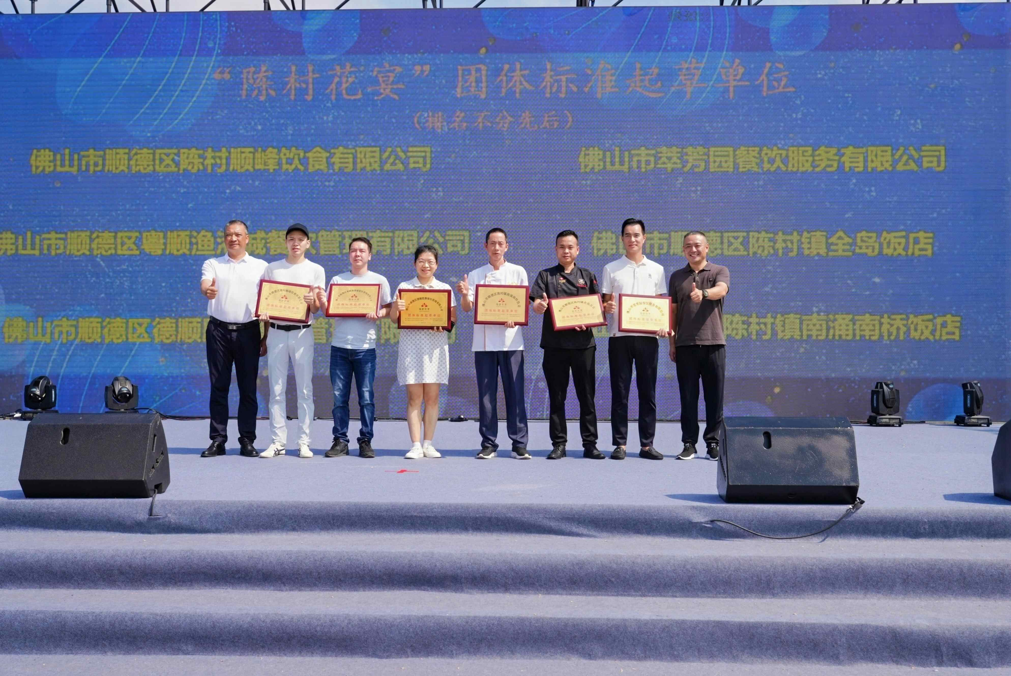 近日,在2024年粤港澳大湾区(顺德)美食文化周上,佛山顺德“陈村花宴”系列五项团体标准正式发布,为陈村镇12家“陈村花宴”团体标准的起草单位授予牌匾。