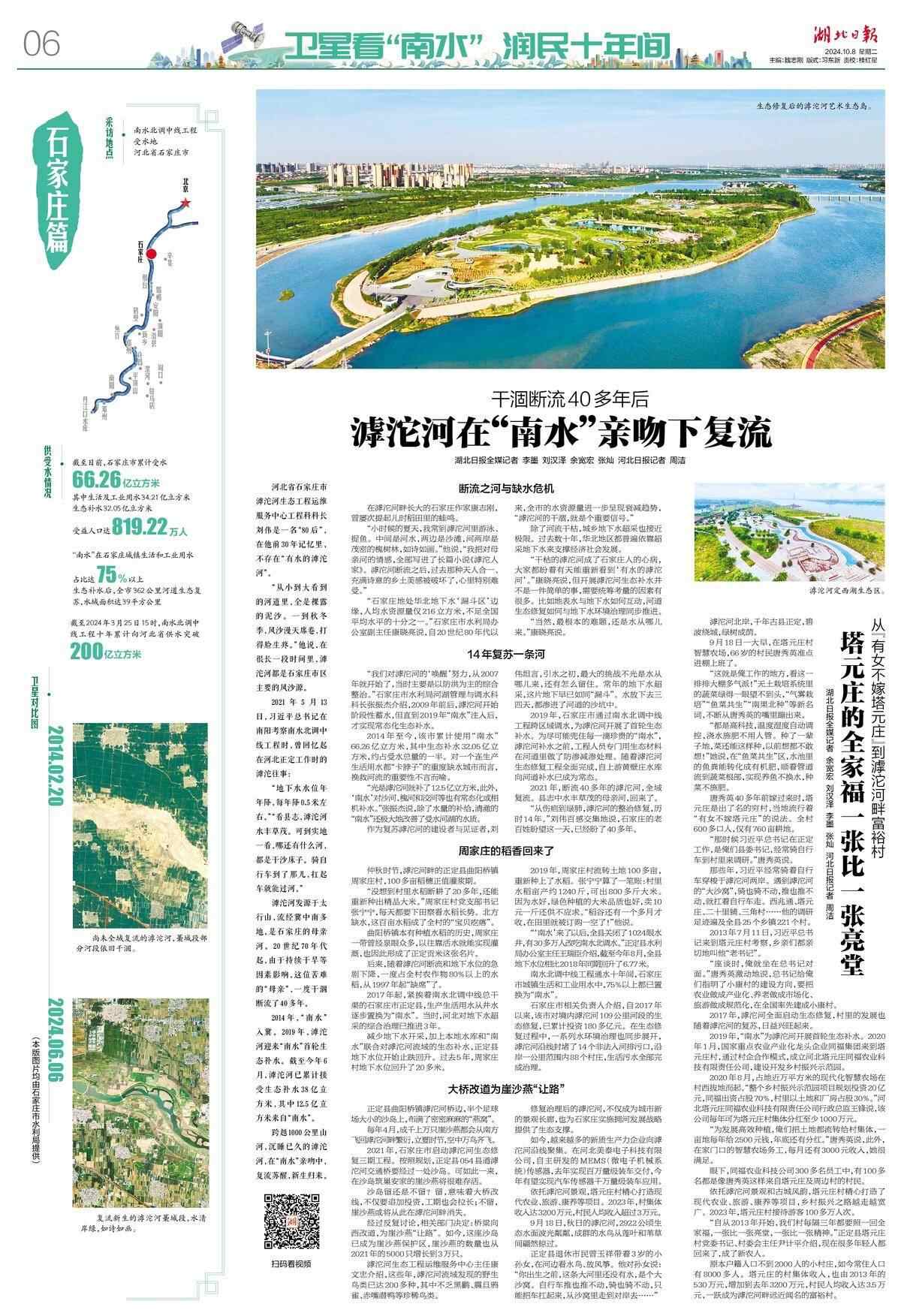 2014年,“南水”入冀。2019年,滹沱河迎来“南水”首轮生态补水。截至今年6月,滹沱河已累计接受生态补水38亿立方米,其中12.5亿立方米来自“南水”。
