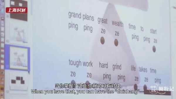 “花几分钟了解规则,你就能用英语做到对仗、平仄、起承转合,这些正是中国绝句形式的精妙之处。”为此,他不仅对常用的单音节词按照词性、词义、发音等方式分类,建立了“单音节词分类词库”,还专门印制了不同平仄模式的韵律表,根据表上的平仄标记填入单词,创作绝句就像完成“数独”游戏一样有趣。幼儿园小朋友乐在其中,即使是把英语作为外语的人也能驾驭。