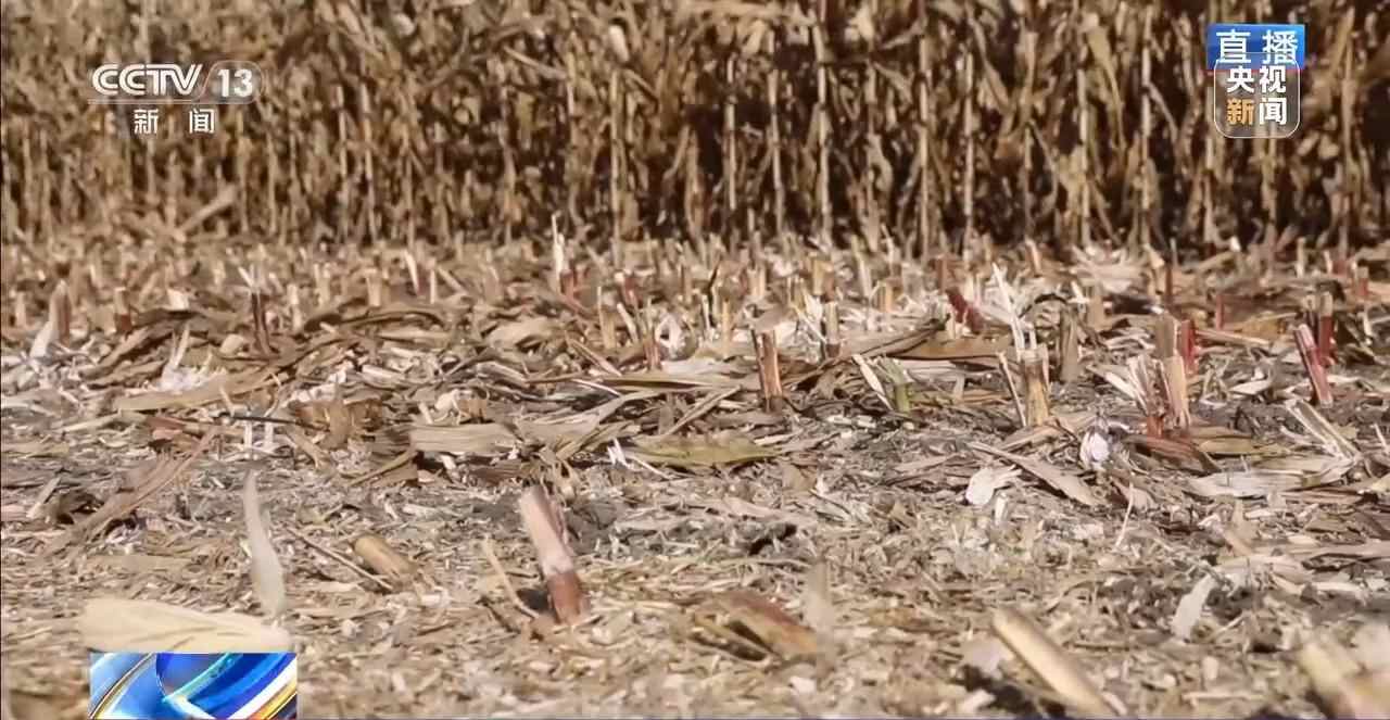 收割之后的田中有很多覆盖的秸秆,这就是当地保护性耕作的核心——秸秆还田。简单说,就是每年秋收之后将部分秸秆留在田中,相当于给黑土地盖上一层被子,这样能够减少风蚀和水蚀的侵害。这里的玉米种植排列也很有讲究,像这条今年种植的位置来年会休耕,而今年休耕的位置来年进行种植,在保证产量的同时让黑土地得以休养生息。通过秸秆还田、交替种植的方式,可以让化肥的使用量降低10%,但产量能够提升8%以上。为什么会有这样的效果?