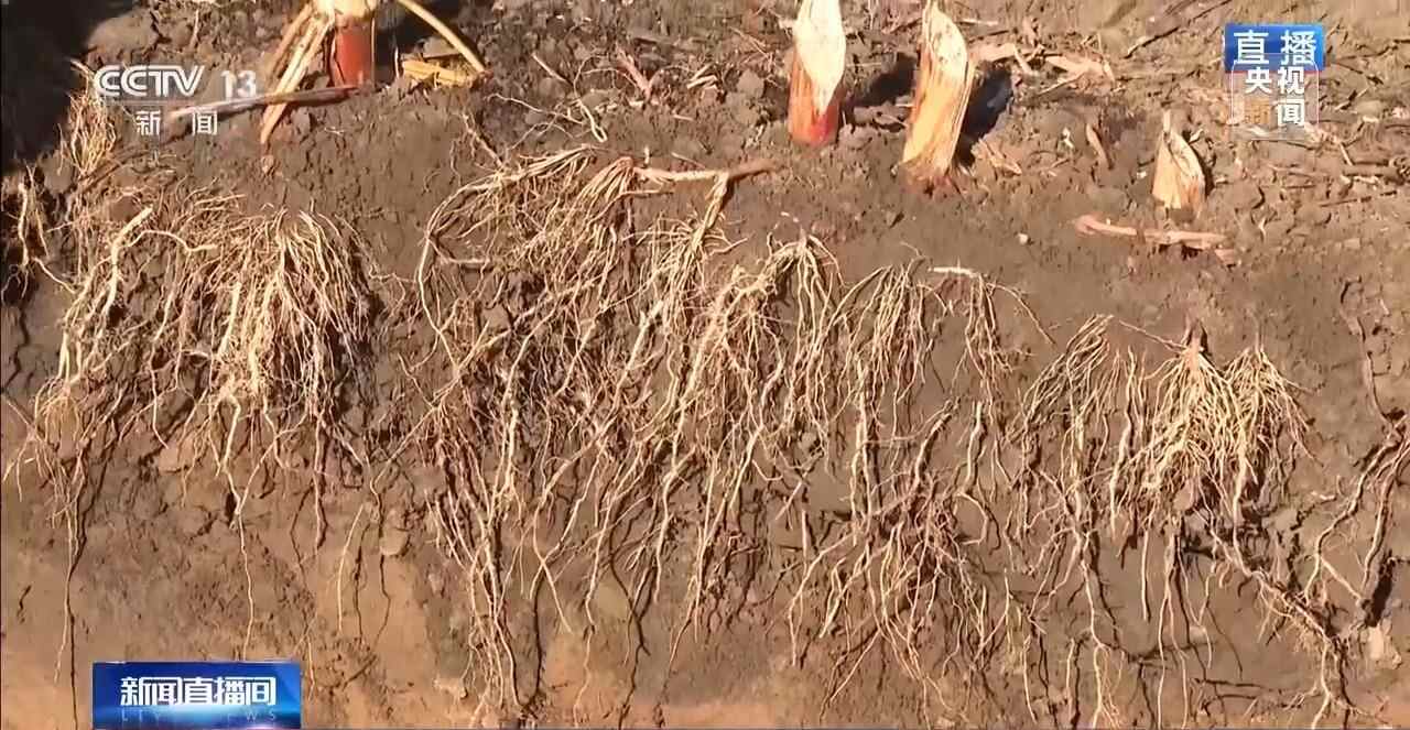 现在我们进入到的是实施保护性耕作10年时间黑土地的剖面,能够明显发现,玉米根须长度有非常明显的不同:实施保护性耕作的地块玉米根须达到了将近1米,而没有实施保护性耕作的地块,根须是在半米。