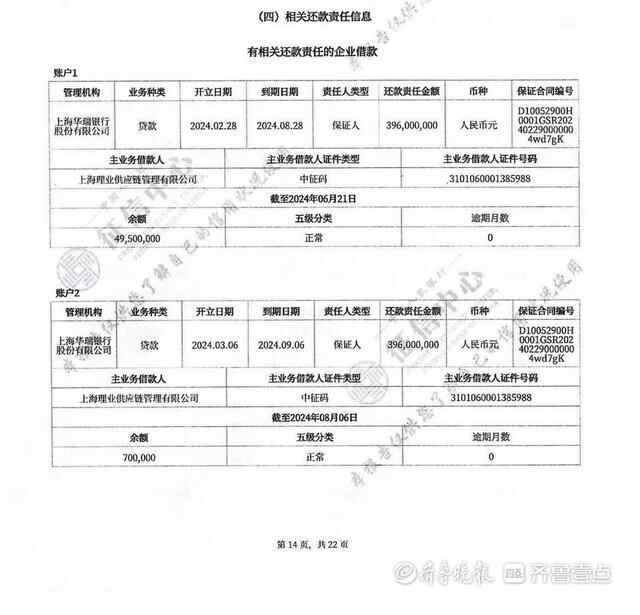 担保信息显示,李女士作为上海理业公司的保证人,向上海华瑞银行贷款人民币3.96亿元。通过进一步查询发现,从今年2月底到8月7日,上海华瑞银行已为上海理业公司陆续发放10笔资金共3.19亿元。