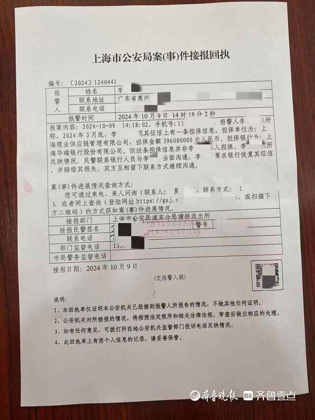今年3月,广东的李女士到中国人民银行查询征信时,发现自己成了近4亿元贷款的担保人。根据征信信息,李女士作为上海理业供应链管理有限公司(以下简称“上海理业公司”)的保证人,从上海华瑞银行股份有限公司(以下简称“上海华瑞银行”)贷款3.96亿元。