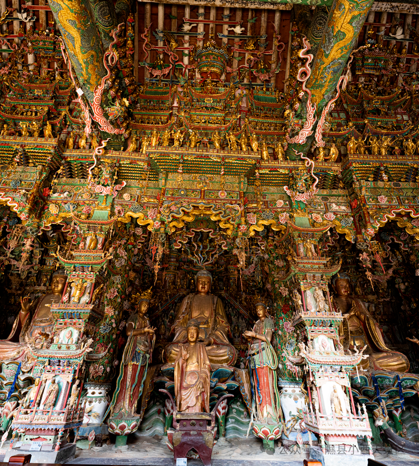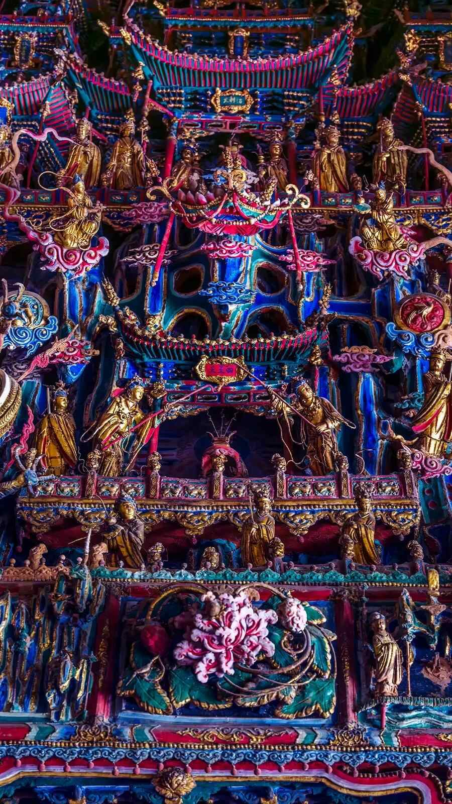 小西天景区的大雄宝殿内,1900多尊层层叠叠的彩塑作品,从最大的3米到最小的拇指大小,每一尊都精雕细琢,栩栩如生,经历近四百年仍完整如新,被誉为“中国悬塑艺术博物馆”。