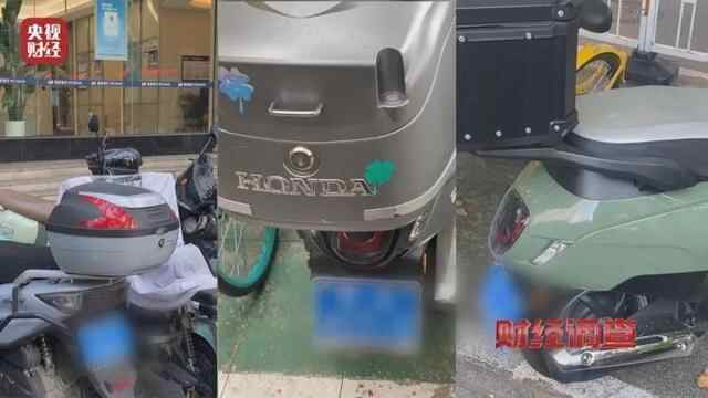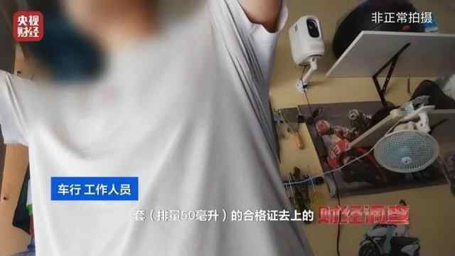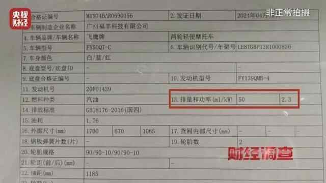 仔细查看路边的车辆后,记者还发现另一个奇怪现象,车辆实际的品牌、排量与铆接在车身的标牌中标注的品牌和排量有很大差别,无论什么型号什么品牌的车,标牌上的排量显示均不超过50ml。
