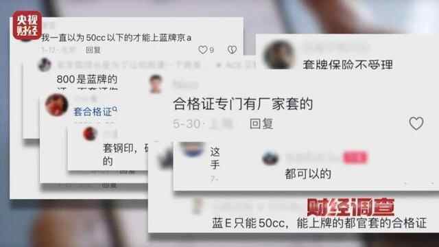 记者来到浙江台州,见到了浙江天鹰机车有限公司的销售人员。销售人员向记者透露,普通摩托车若想上蓝牌,就需要他们工厂的公告,也就是合格证。然后修改车架号和发动机号,才能上蓝牌。这样一来,明明是大排量的普通摩托车,合格证、标牌以及公安部门颁发的行驶证、号牌颜色上就显示为排量不到50ml的轻便摩托车。