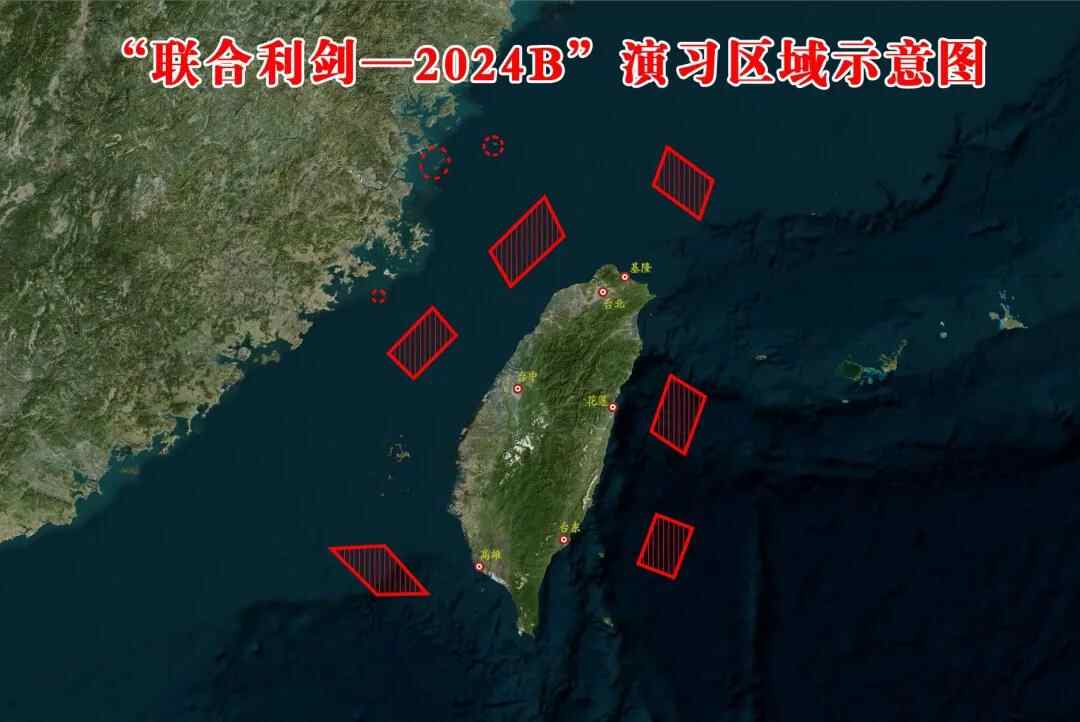 东部战区发布“联合利剑-2024B”演习区域示意图↓↓