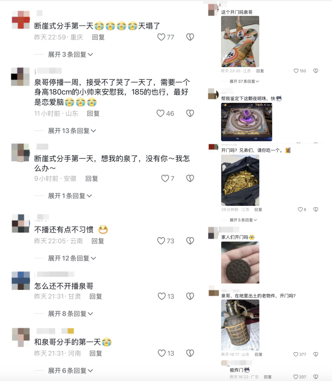 即便是在停播期间,“听泉鉴宝”的讨论热度依旧不减。有人猜测,停播是为了避风头。也有一些网友觉得,停播只是因为直播压力太大,想要放松一下。还有部分网友认为,选择暂时停播,是因为足够清醒和理智。