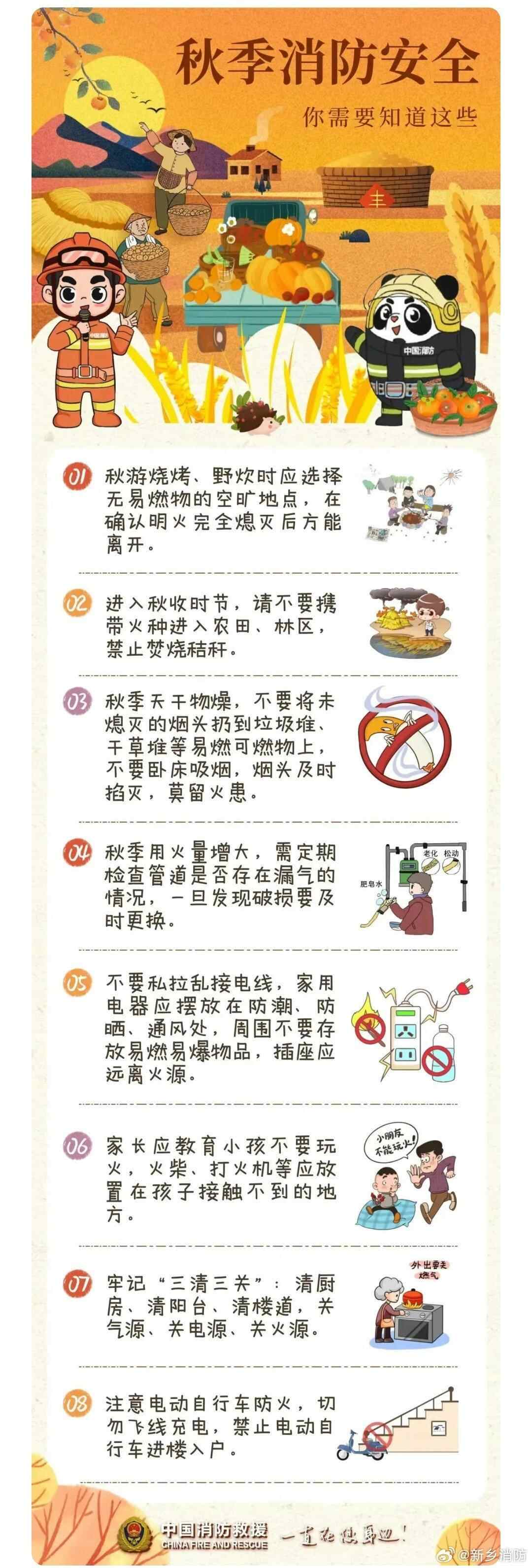 目前广东森林火险气象等级高,再次提醒大家,不要带火种进山林,进入山林后不要有野火野炊、吸烟等危险行为。秋季消防安全还需要注意什么,一图速览↓↓↓