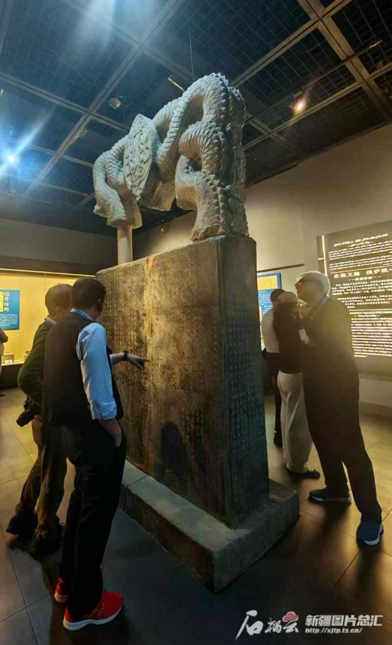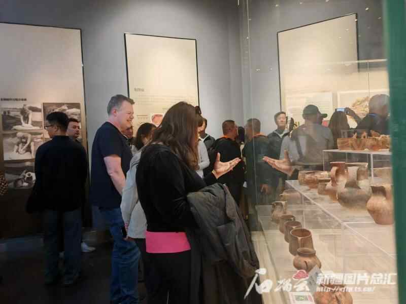 10月15日,出席第六届世界媒体峰会的部分嘉宾走进吐鲁番博物馆。石榴云/新疆日报记者 王娜摄