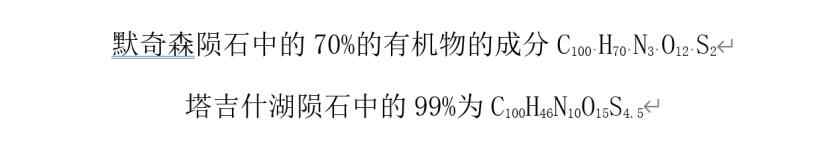 其中,被研究得很深的碳质球粒陨石包括默奇森陨石(Murchison)和塔吉什湖陨石(Tagish Lake),科学家们在它们中发现了包括酮、烷烃、羧酸、氨基酸、甲烷以及多环芳烃在内的多种小分子有机物,但是其中绝大部分有机物都是大分子有机物,默奇森陨石和塔吉什湖陨石的主要有机物成分见下图。