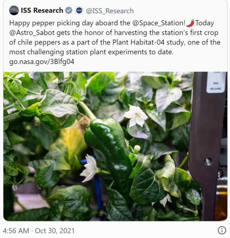 正因如此,人们对太空食物的研究从未停下脚步,比如在目前条件下最容易实现的太空农场,即直接在空间站或航天器中种植植物并收获食物,已经在中国和美国的两个空间站内进行了多次实验,并已经在太空中培育出了多种蔬菜,美国航天员甚至早已在太空吃到了他们种下的生菜、胡萝卜和辣椒等蔬菜。
