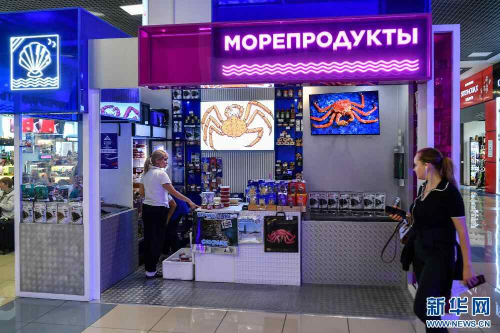 这是在俄罗斯符拉迪沃斯托克机场拍摄的海鲜商店。