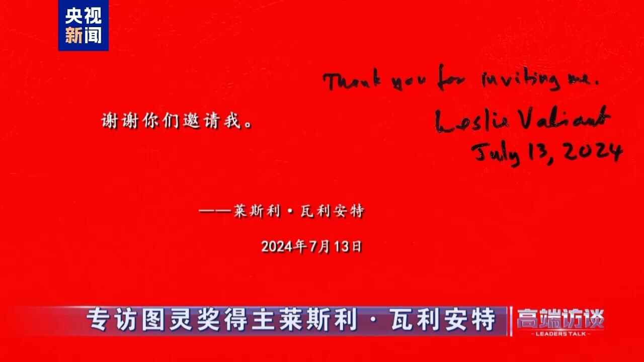 △图灵奖得主莱斯利·瓦利安特在接受总台专访后题词