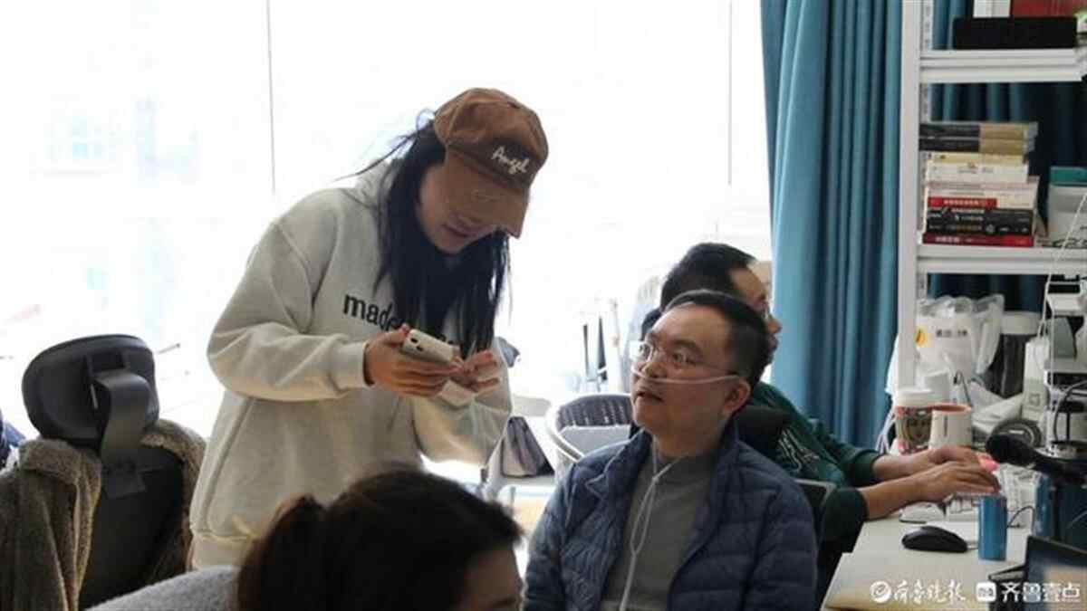 目前,在日常生活中,蔡磊还需要在人搀扶的情况下站立和行走,说话、发声、呼吸、吞咽等日常功能也变得更加困难。“团队担心工作室人多,会发生交叉感染,目前蔡总在家居家办公,我们接触他的时候,也都需要佩戴口罩,尽可能地降低各种风险。”该工作人员称。