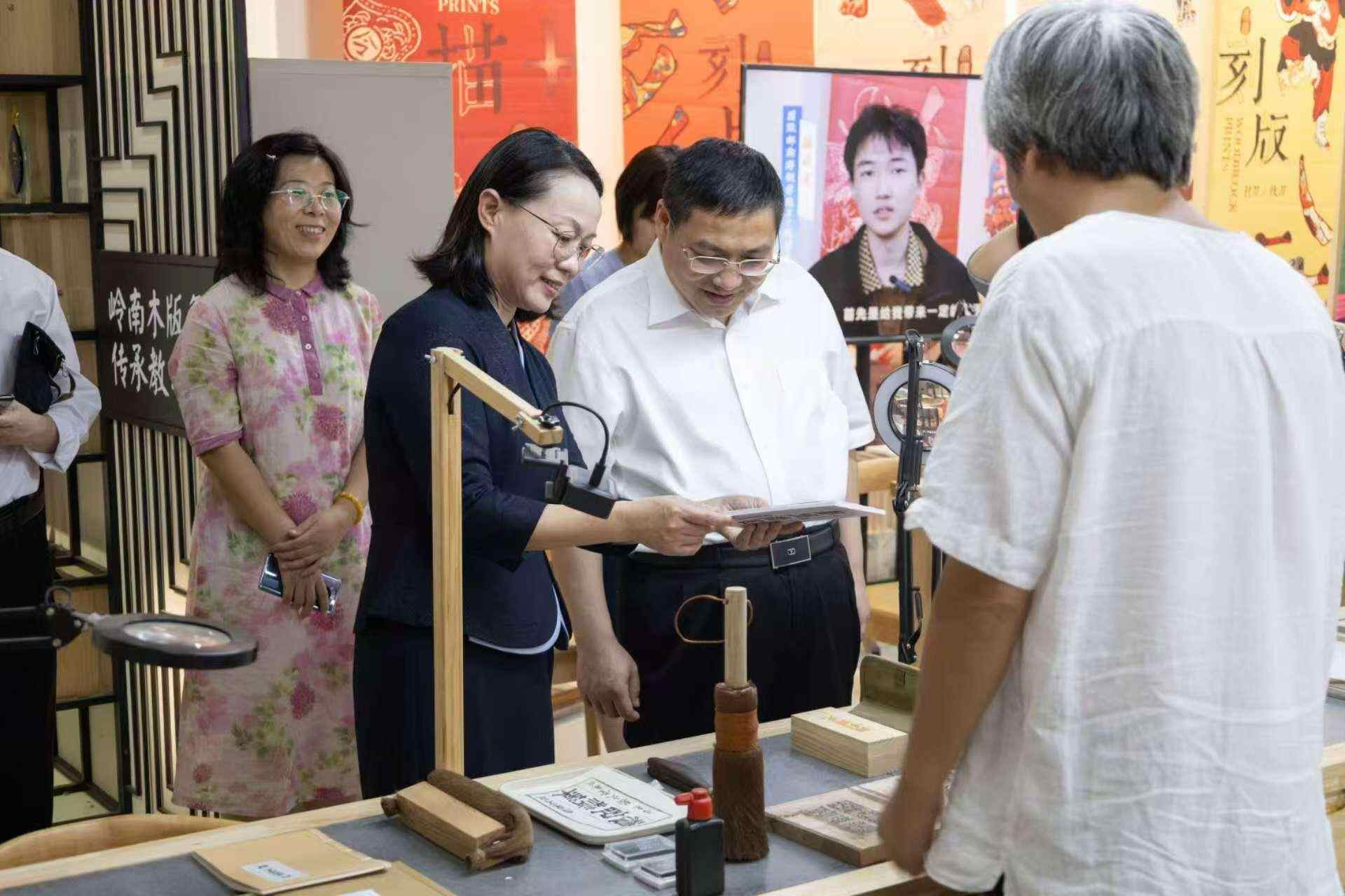 李宜航一行深入广州开发区、黄埔区开展实地调研,实地考察了广州航海学院、广州商学院。在广州航海学院先进材料研究院,师生们解锁海洋经济高质量发展“密码”,为建设现代化海洋强国贡献智慧;在传统木版年画教学实验室,师生们运用数字激光雕刻机、书画高清轨道扫描仪等先进设备,与国家级非遗项目佛山木版年画传承人合作,创新性“复活”木版年画。李宜航对该校一手抓自然科学一手抓人文社科的创新发展路径表示赞赏,他指出,要进一步强化社会科学与自然科学融合发展,既要传承中华优秀传统文化,又要形成服务和支撑科技高质量发展的社科理论成果。