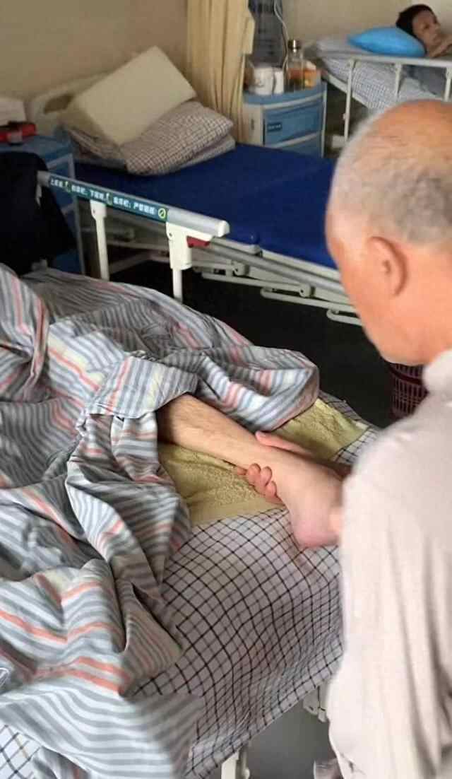 在医院住院时,小伍的爷爷每天都会来到医院给孙子按摩,近日,爷爷照顾小伍的视频被小伍的姐姐发布在网上后引发众多网友感动,有网友表示,“爷爷真的很伟大”,也有网友祝愿道,“爷爷辛苦了,一定要快快好起来”。