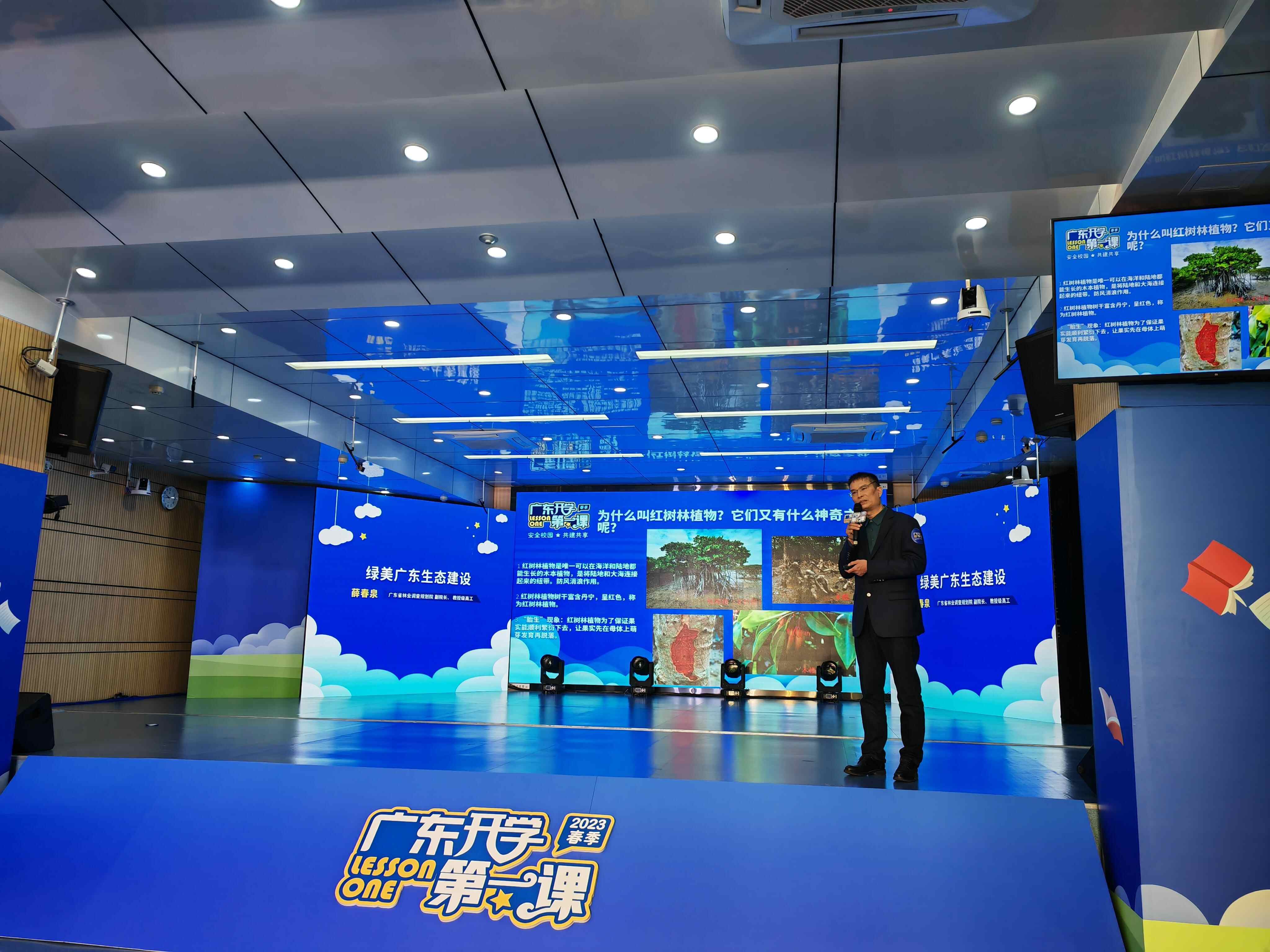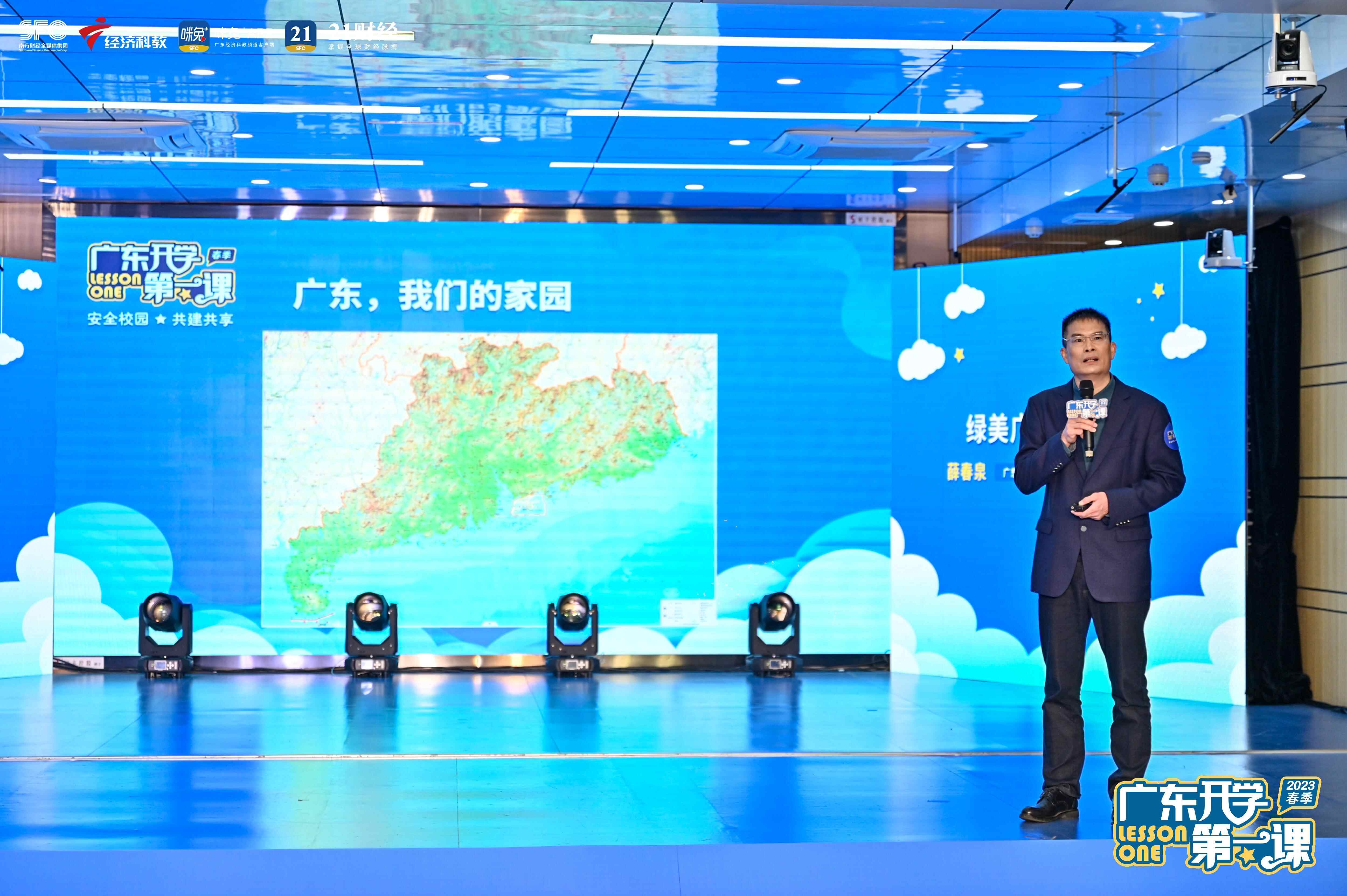 针对绿美广东生态建设内容,本期“开学第一课”邀请了广东省林业调查规划院副院长、教授级高级工程师薛春泉作主题宣讲。薛春泉表示,大自然是最好的老师,“山水林田湖草沙”就是最好的课堂。他从森林、湿地和野生动植物之美等三个方面向全省中小学生介绍了我省林业生态建设情况,鼓励他们养成爱护生态、崇尚自然、植绿爱绿的良好习惯,积极参与绿美广东生态建设。
