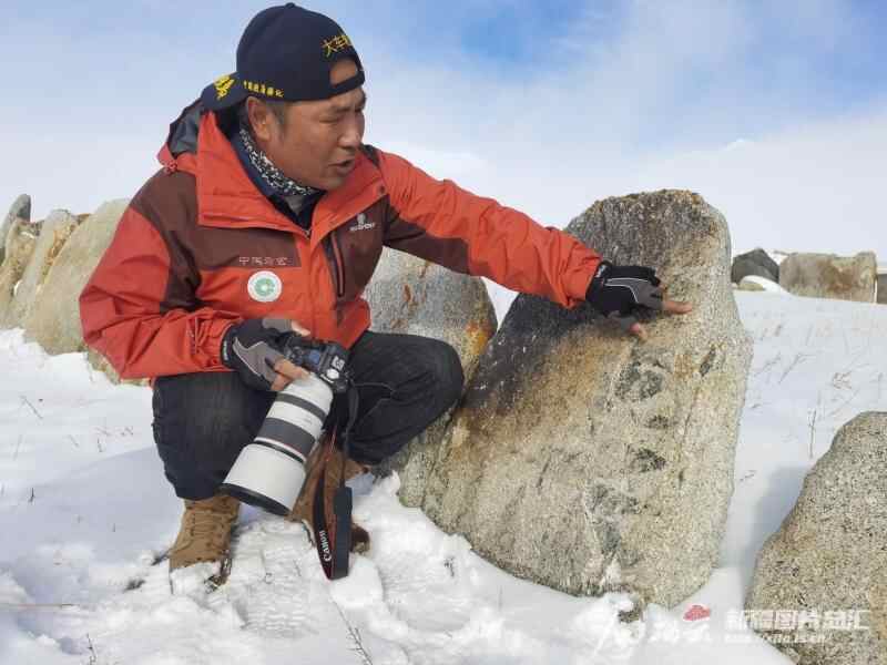 10月18日,温泉县迎来第一场雪。气温骤降,寒气逼人,朱平和同事冒雪前往距离县城40公里以外的阿敦乔鲁石栅古墓群及岩画群开展文物巡查。