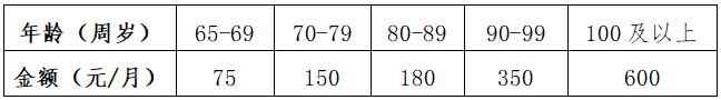 目前,津贴标准按照年龄段共分为五档,具体如下: