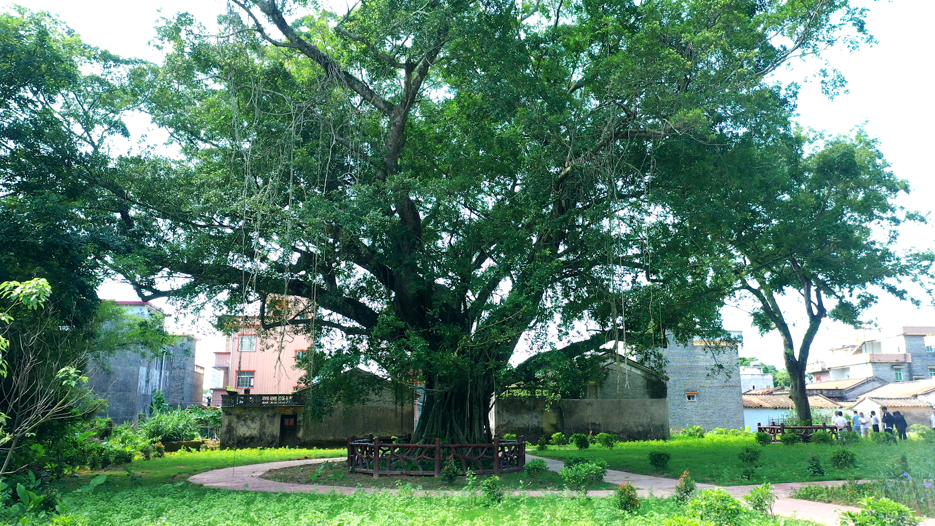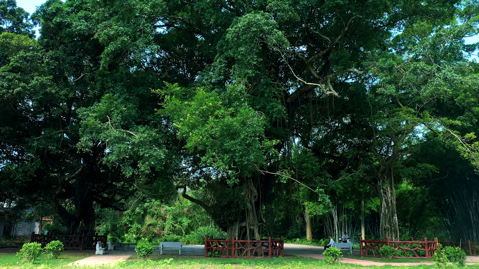 如今,丹梨村古树小公园建设完成,面积2000多平方米,共有6株古树,其中5株为榕树,1株为朴树。最引人注目的,是那株树龄高达350年的古树,走近触碰,可以感受到岁月在它身上留下的痕迹,遒劲的树枝和斑驳的树皮,无声地诉说着历史的沧桑。在这片绿意盎然的环境中,枝叶随风摇曳,蝉鸣声声入耳,村民们在树下拿着蒲扇乘凉,唠嗑家常,一幅宁静的乡村生活画卷油然而生。