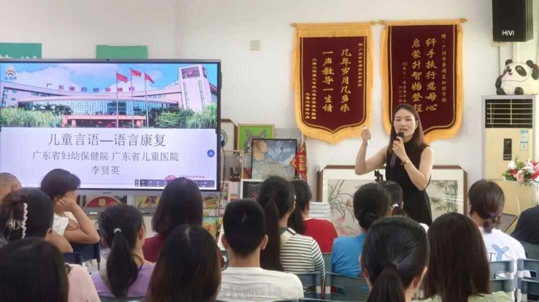 活动中,由广东省妇幼保健院康复医学科语言治疗师李贤英老师为家长们带来了彩虹桥家长学校的首课——《儿童言语-语言康复》,李老师结合自己十多年的临床经验,为家长们带来了专业而实用的神经康复方面知识分享,受到了家长们的一致好评。
