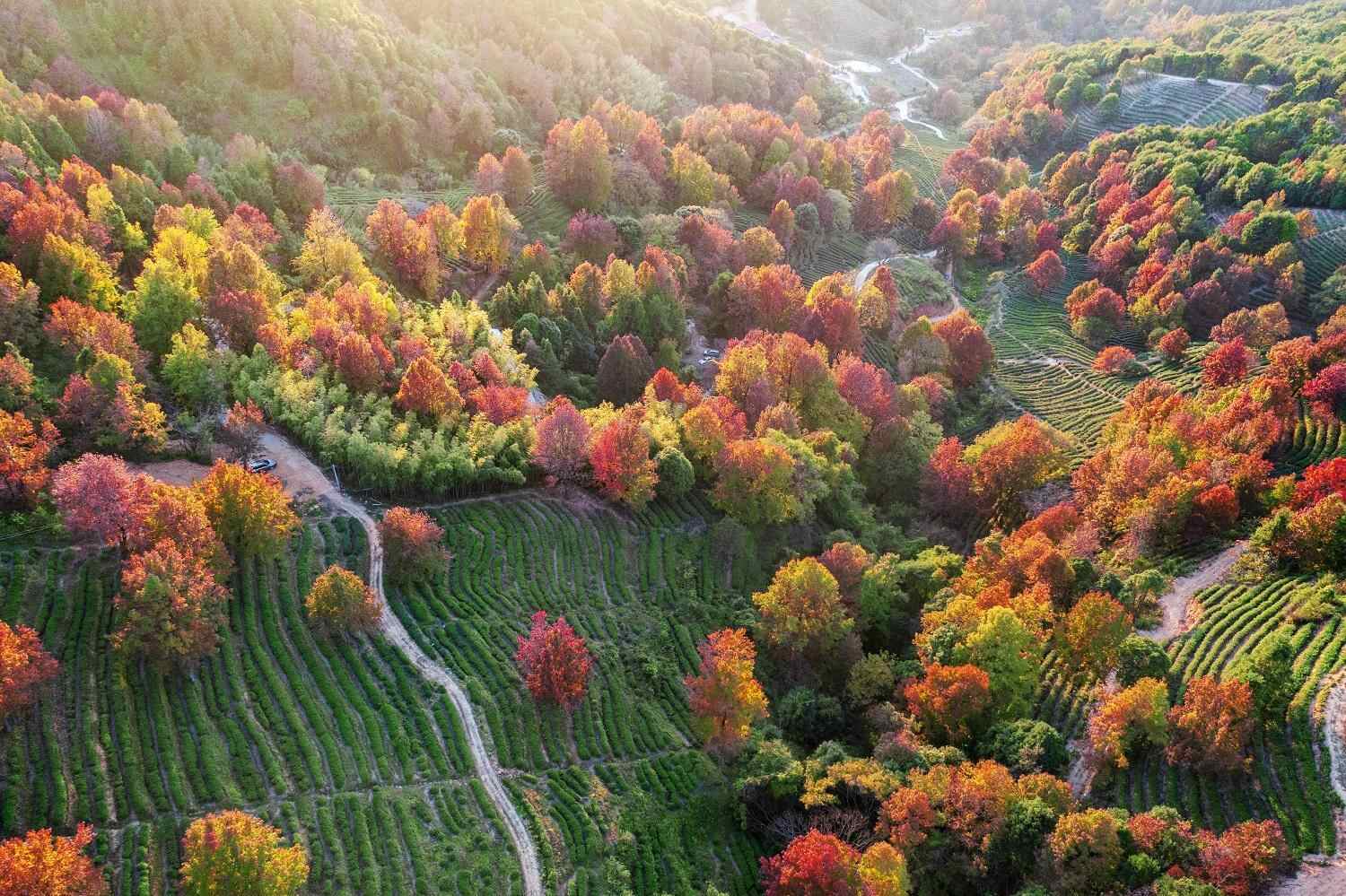 山的更深处,枫林正准备着一场变装。河源东源县上仙湖茶场里,数千棵枫树与茶树相伴而生。霜降后,待层林尽染,灿如云霞。