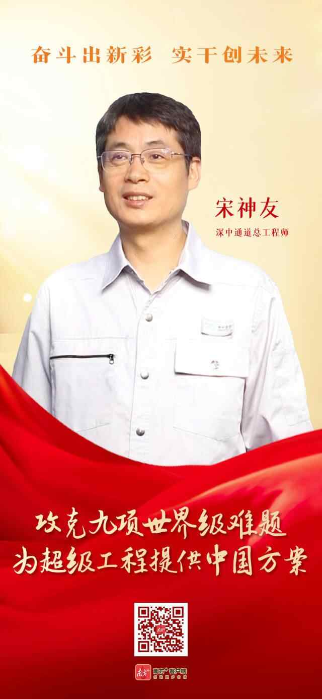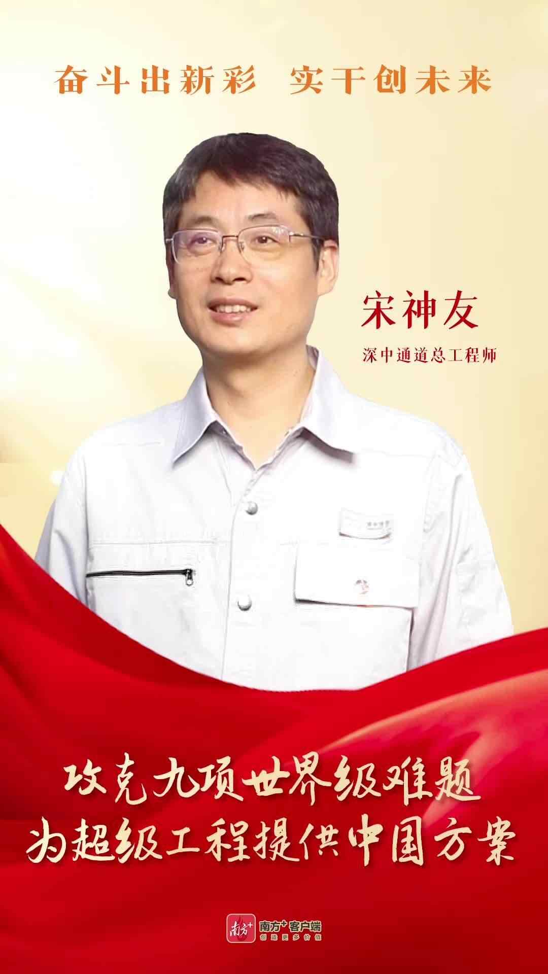 2024年1月,宋神友被党中央、国务院授予首届“国家卓越工程师”称号。他说:“作为深中通道项目15000名建设者中的一员,我们共同攻克了六大方面的九项世界级难题,历经7年才建成了深中通道。光荣属于全体建设者。”