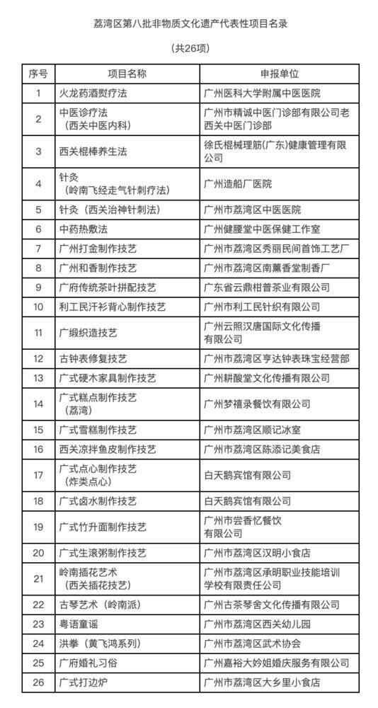 附:荔湾区第八批非物质文化遗产代表性项目名录(共26项)
