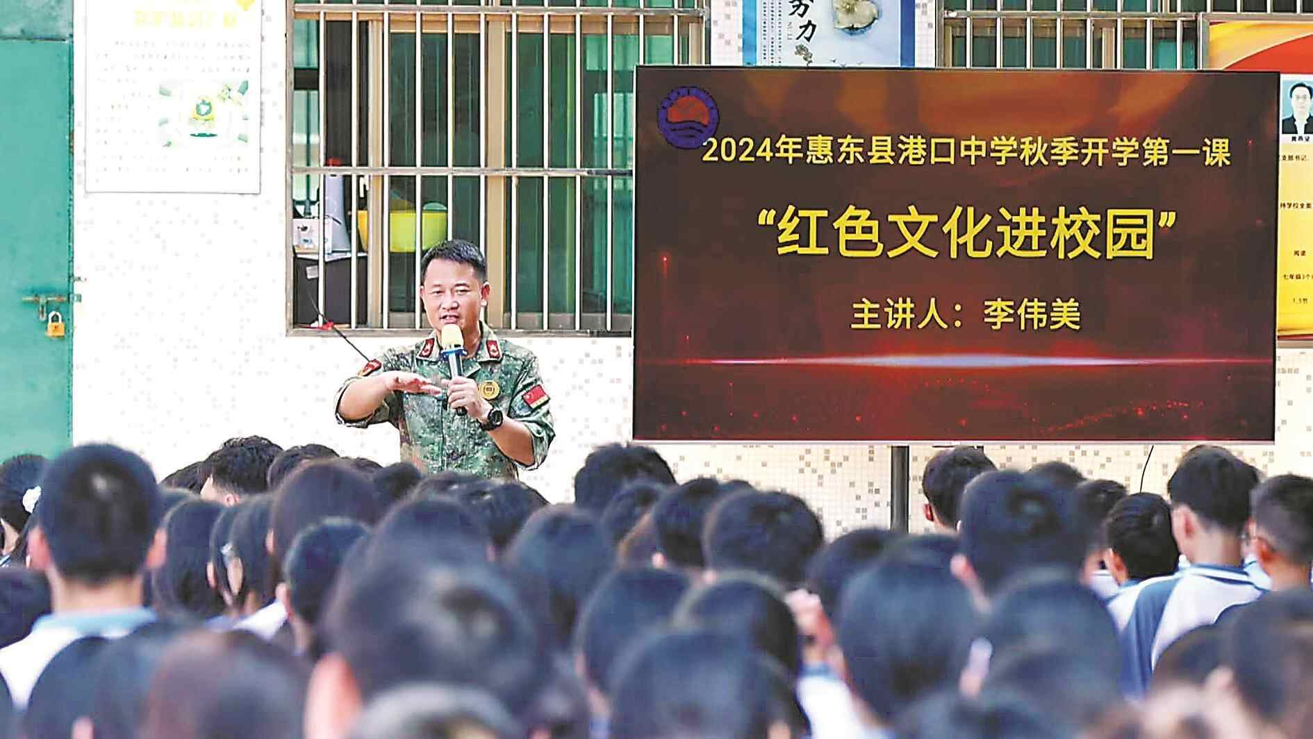 升国旗、听宣讲、唱红歌……在今年9月开学之际,惠东县各地中小学校相继开展以“传承红色基因 争做时代新人”为主题的“国旗下的开学第一课”红色文化进校园系列活动,让在校师生通过聆听红色主题宣讲、实地参观学习、开展课后红色课堂等方式传承红色精神,掀起了红色教育热潮。