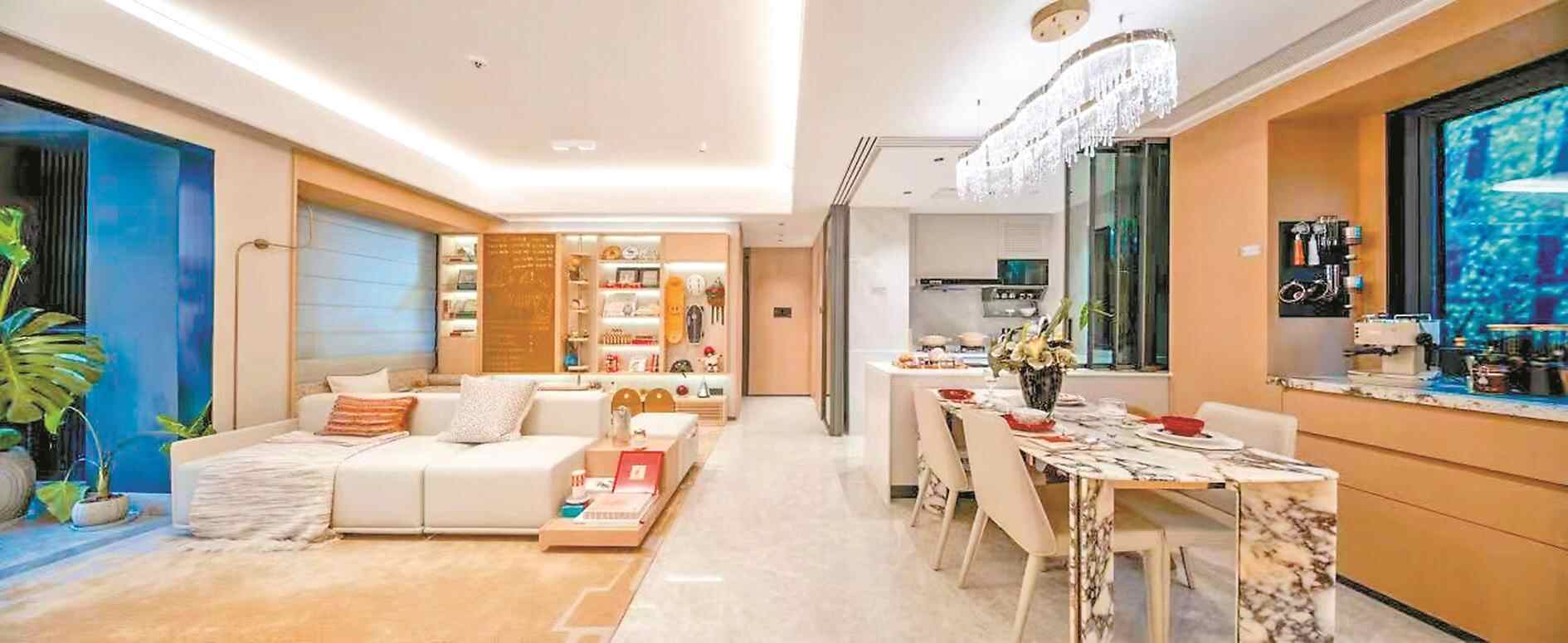 除此之外,项目击中生活中物件摆放易乱的痛点,赠送入门玄关柜、岛台、橱柜、餐边柜、主卧衣柜、浴室台盆柜+镜柜等极致收纳系统,在户内还配置了华为智能系统,支持超7000款家电单品的智慧连接,呈现面向未来的生活场景和居住体验,让居住省心、放心。