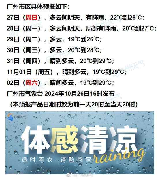 广州方面,周末偶有阵雨洒水,随身带伞谨防被局。