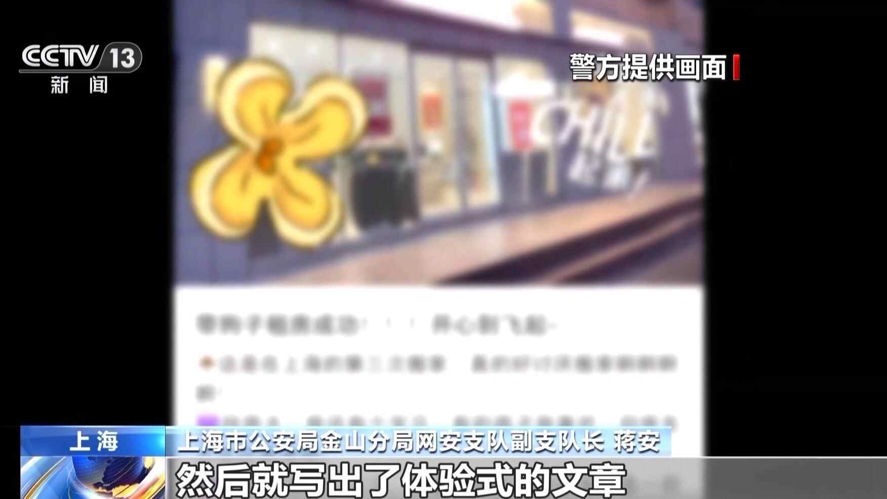 上海市公安局金山分局网安支队副支队长 蒋安:正常的网红或者大V是先收到产品之后,写一些体验式文章,用过感觉怎么样的文章。他们是没有收到过任何产品,也没有去体验过这些服务,就写出了体验式的文章。