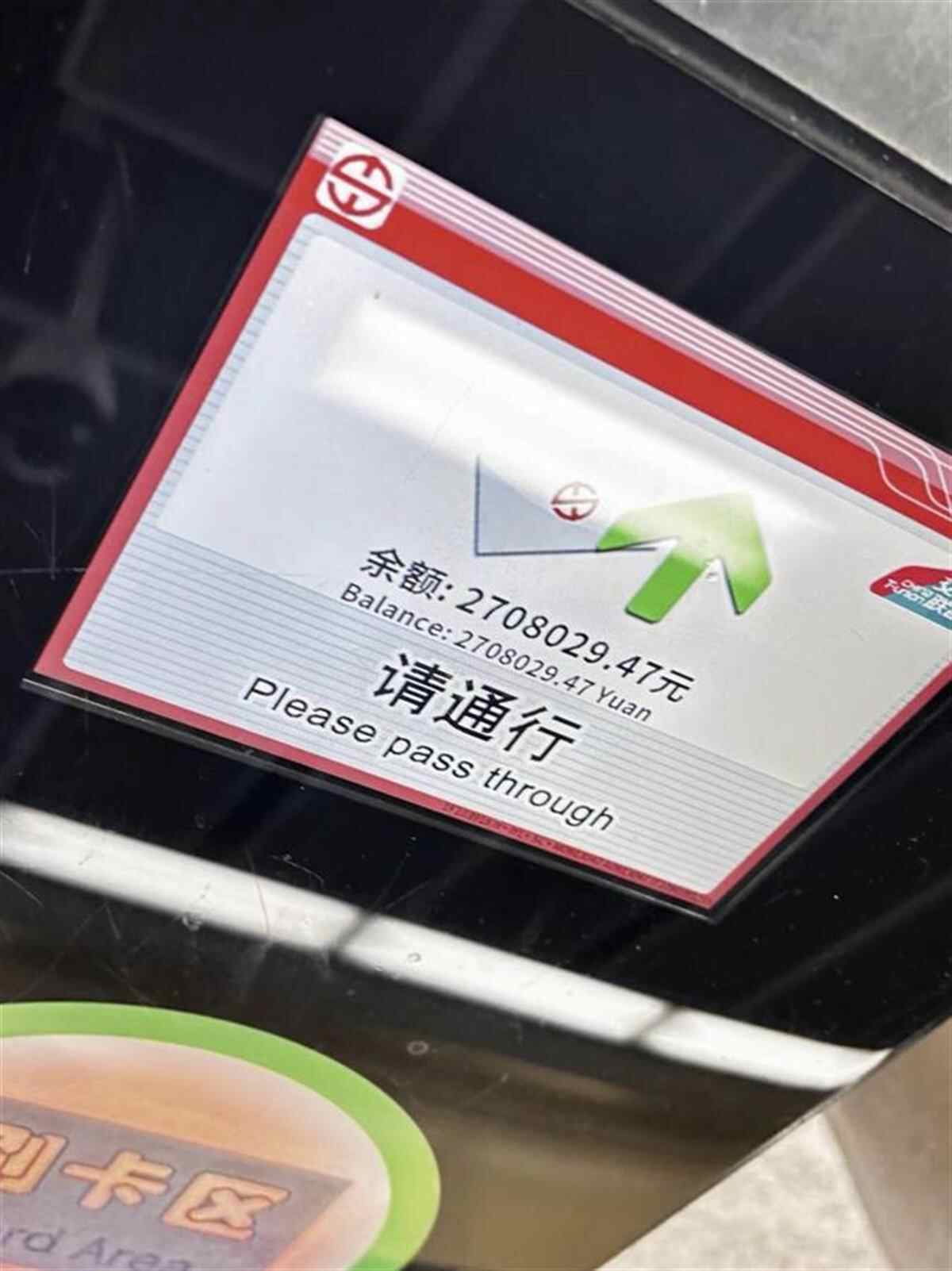 10月26日,有网友发帖称,有乘车刷卡乘坐沈阳地铁时,电子屏显示其卡中有2708029.47元的余额。