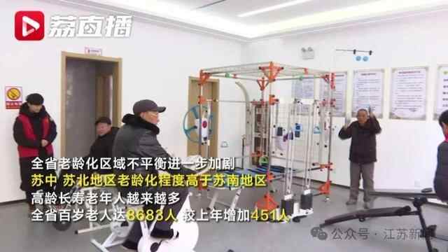人口老龄化程度持续加深的同时,全省老龄化区域不平衡进一步加剧,从常住人口上看,苏中、苏北地区老龄化程度明显高于苏南地区。全省老年人抚养比不断攀升,达27.14%。高龄长寿老年人越来越多,全省百岁老人达8683人,较上年增加451人。与此同时,数据显示,全省老年人口的增长仍以低龄老人为主。