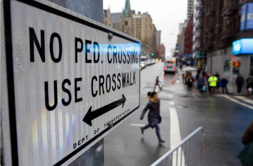 在行人和司机经常发生争执的纽约市,处罚乱穿马路的法律在1958年出台,违者罚款可高达250美元。