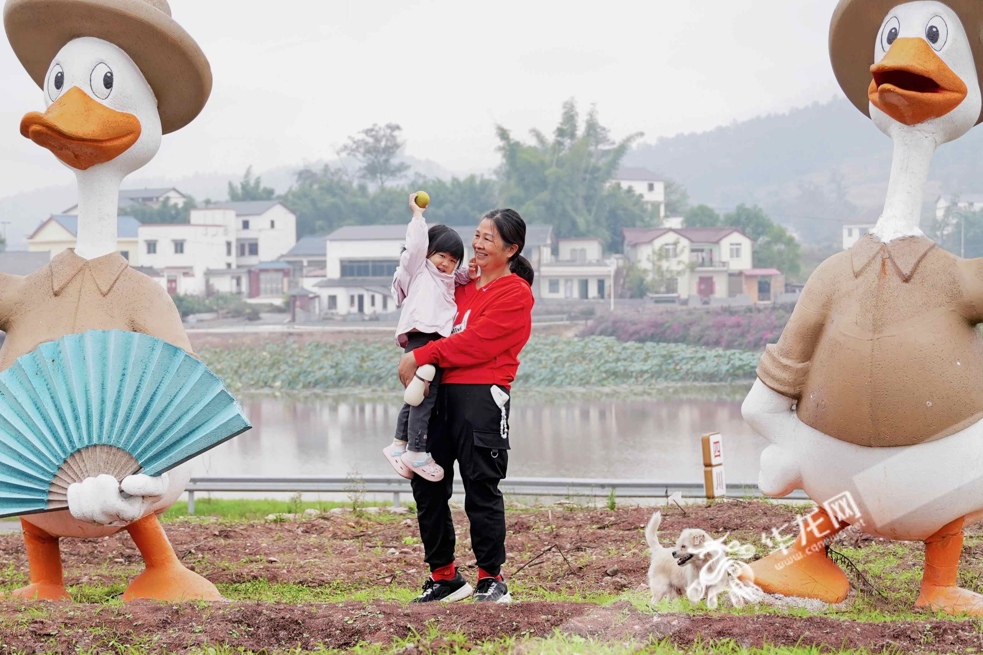 这是“荣荣”,这是“隆隆”,园区内,两只分别拿陶壶和扇子的“唐老鸭”雕像欢迎着客人的到来。别怀疑,这里是重庆荣昌、四川内江隆昌的交界处。虽在交界处,却像是一个世外桃源。