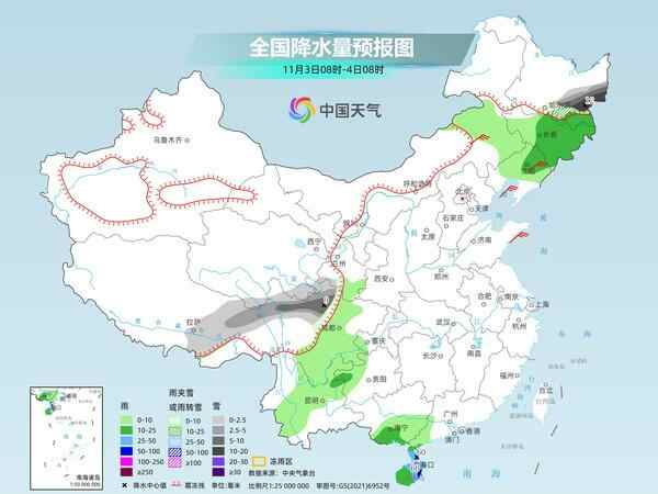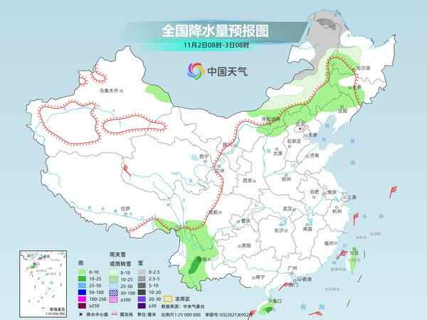 明天,内蒙古中东部、黑龙江西北部等地部分地区有小雪或雨夹雪,其中,内蒙古东北部、黑龙江西北部等地局部地区有中雪。内蒙古中部、东北地区西部、西藏东南部、华北北部、四川南部、云南大部、海南岛大部、台湾岛东部等地部分地区有小雨,其中,云南中部、海南岛东南部等地部分地区有中雨。