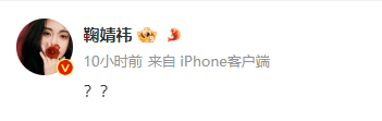 随后不久,鞠婧祎微博发布两个问号。