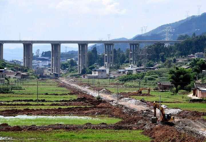 在凉山州会理市鹿厂镇的水稻现代农业园区,连片的水稻田绵延至山脚下。不远处,五六台挖掘机正在凹凸不平的土地上作业,进行田型调整和沟渠开挖。鹿厂镇镇长胡正建说,园区内现有改造提升完成的水稻田3500亩,今年预计将扩大到5000亩。