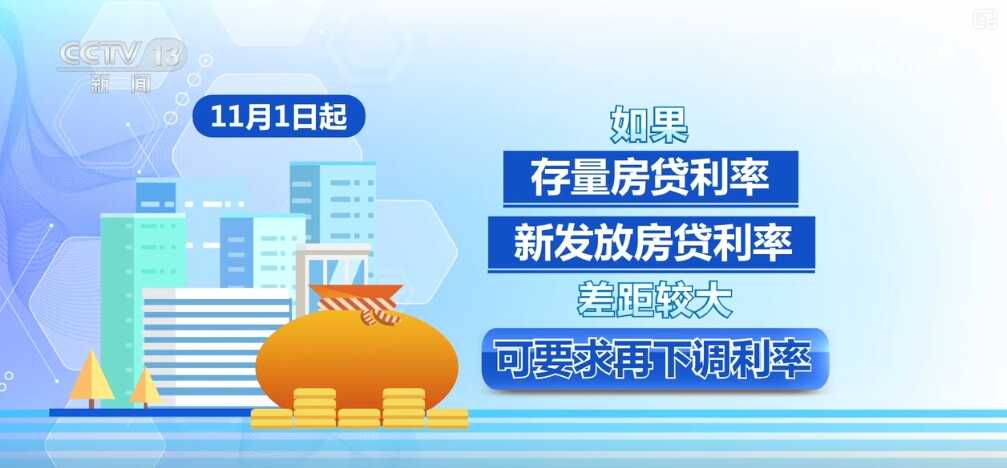 也就是说,从11月1日起,存量房贷利率如果和新发放的房贷利率差距比较大,您还可以要求再下调利率。