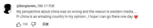 我以前对中国的看法完全是错误的,原因在于西方媒体。在我看来,中国是一个神奇的国家,我希望有一天我能去那里。